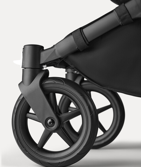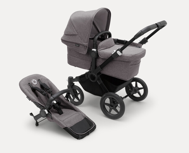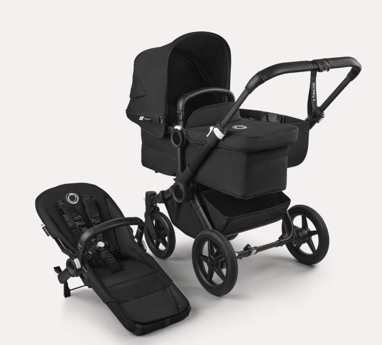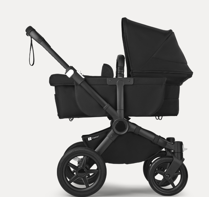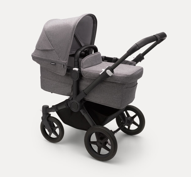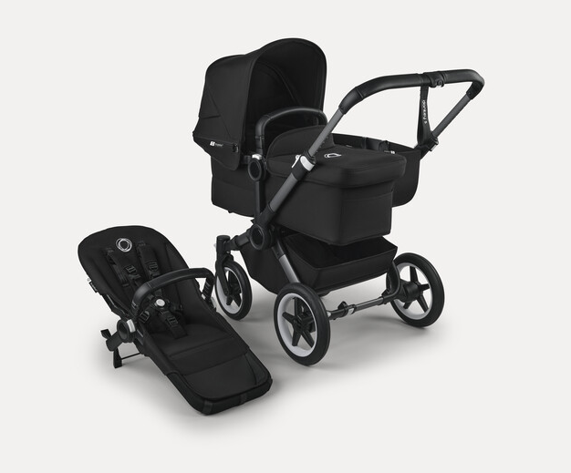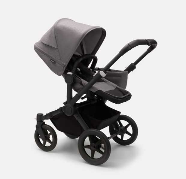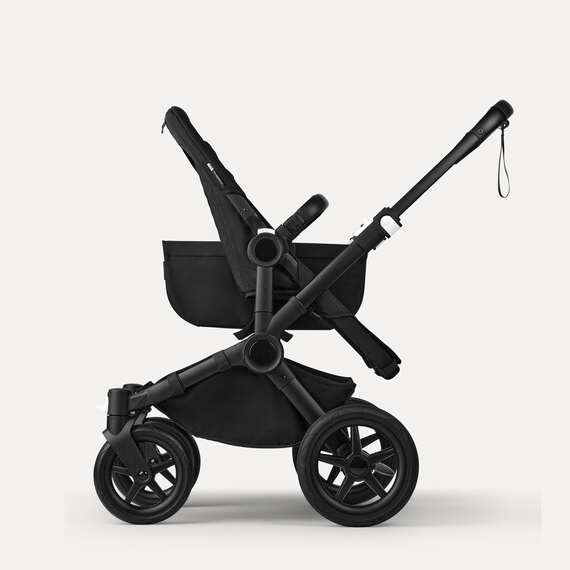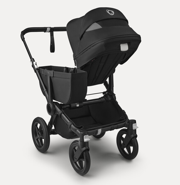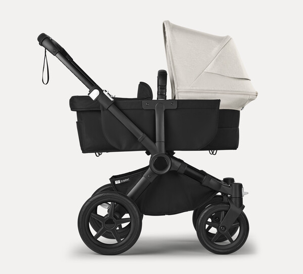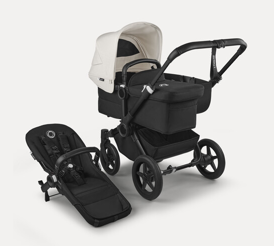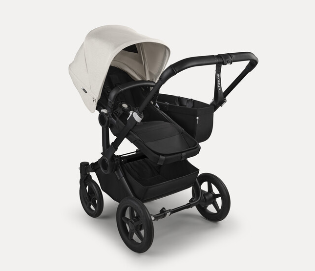 Misty white sun canopy, midnight black fabrics, black base