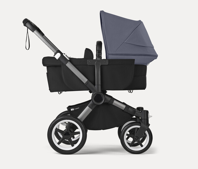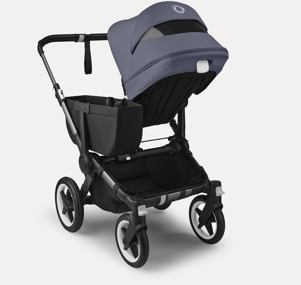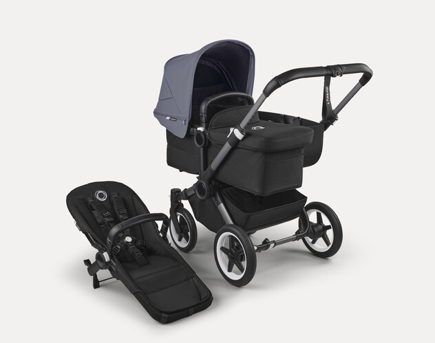 Stormy blue sun canopy, midnight black fabrics, graphite base